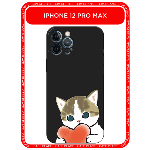 Черный матовый чехол на Apple iPhone 12 Pro Max / Айфон 12 Про Макс с принтом Котик с сердечком