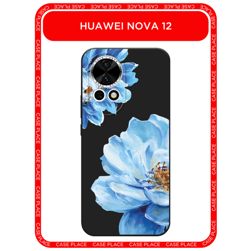 Черный матовый чехол на Huawei Nova 12/Nova13 / Хуавей Нова 12/Нова 13 с принтом Голубые клематисы