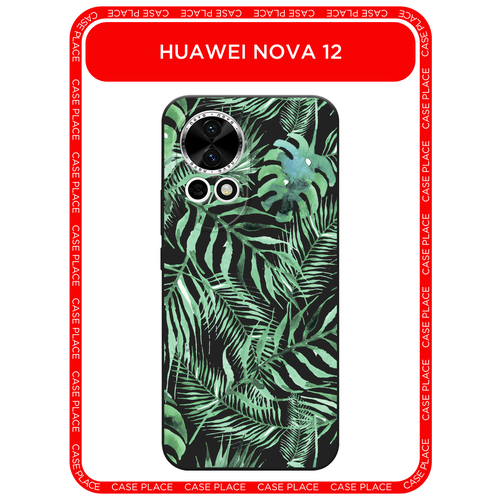 Черный матовый чехол на Huawei Nova 12/Nova13 / Хуавей Нова 12/Нова 13 с принтом Папоротник фон 2