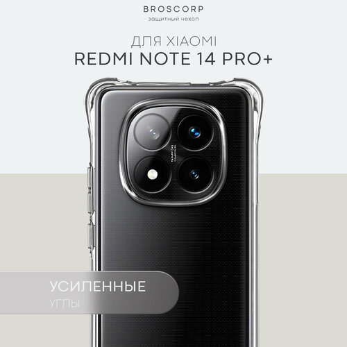 Противоударный чехол Broscorp на Xiaomi Redmi Note 14 Pro+ (Сяоми Редми Ноут 14 Про+), с усиленнными углами, прозрачный