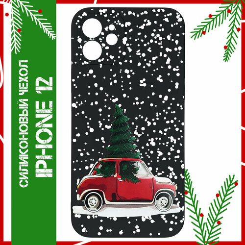 Силиконовый защитный чехол Елка в авто для iPhone 12 / Айфон 12