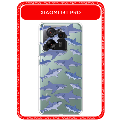 Чехол на Xiaomi 13T Pro / Сяоми 13Т Про с принтом Акулы паттерн 2, прозрачный