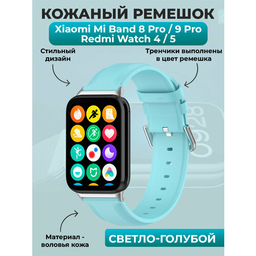 Кожаный ремешок для Xiaomi Mi Band 8 Pro / Xiaomi Mi Band 9 Pro, светло-голубой