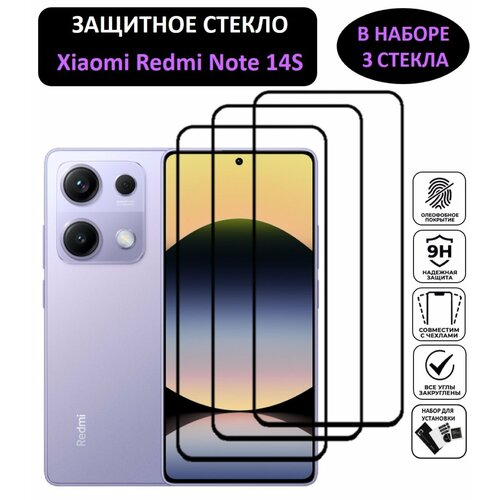 Комплект 3 в 1: Защитное стекло для Xiaomi Redmi Note 14S ( 3 шт ) Ксяоми Редми Нотэ 14с Полноэкранное стекло Full Glue