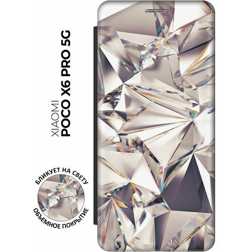 Чехол-книжка на Xiaomi Poco X6 Pro 5G / Сяоми Поко Х6 Про 5г с рисунком "Алмазные грани" черный