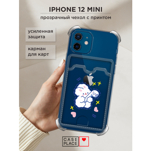Чехол на Apple iPhone 12 mini (Айфон 12 Мини) с картой и принтом Мишка с наушником в корейском стиле