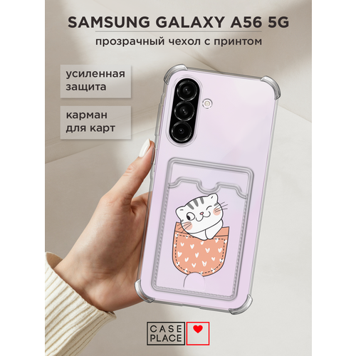 Чехол на Samsung Galaxy A56 5G (Самсунг Галакси А56 5G) с картой и принтом Котик подмигивает в кармане
