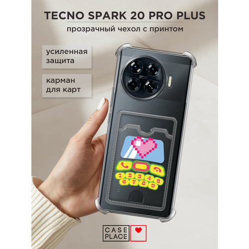 Чехол на Tecno Spark 20 Pro Plus (Текно Спарк 20 Про Плюс) с картой и принтом Пиксельное сердечко