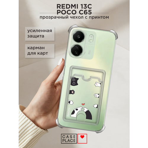 Чехол на Xiaomi Redmi 13C/Poco C65 (Сяоми Редми 13C/Поко С65) с картой и принтом Лапки кошки