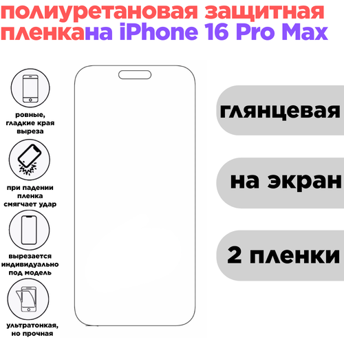 Комплект 2шт. Гидрогелевая полиуретановая защитная пленка для iPhone 16 Pro Max, глянцевая