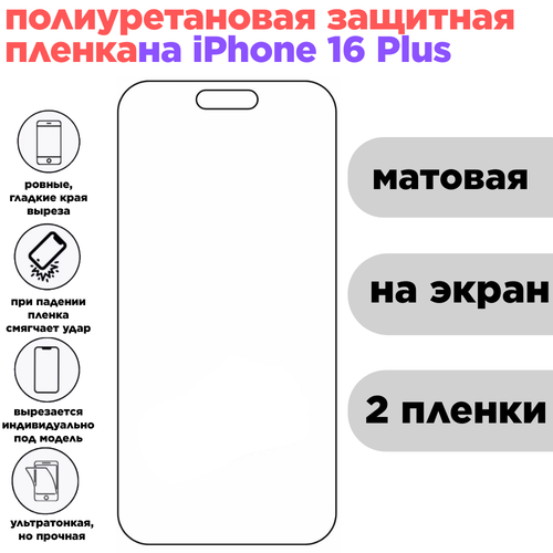 Комплект 2 шт. Гидрогелевая полиуретановая защитная пленка для iPhone 16 Plus , матовая
