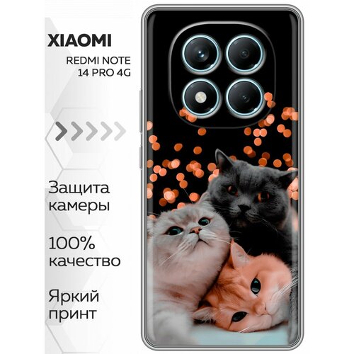 Чехол для Redmi Note 14 Pro 4G с принтом Смешные котики (Редми Нот 14 Про 4G)