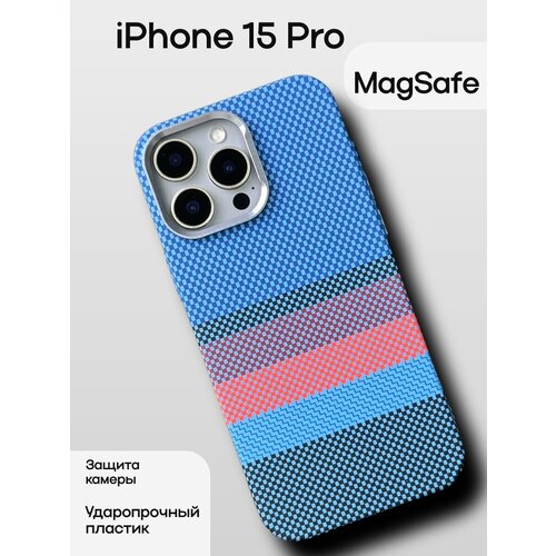 Чехол на IPhone 15 Pro с MAGSAFE под карбон из ударопрочного пластика с защитой камеры синий