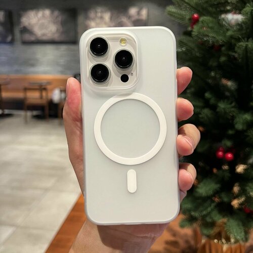 Чехол на Айфон 16 Про с MagSafe, полупрозрачный для iPhone 16 Pro, белый магсейф