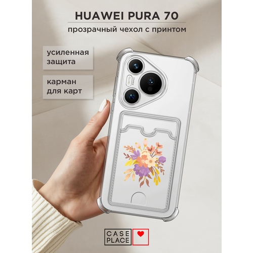 Чехол на Huawei Pura 70 (Хуавей Пура 70) с картой и принтом Цветы полевые