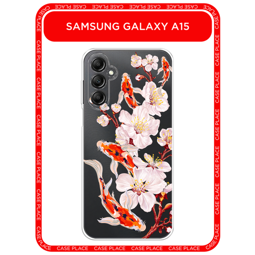 Чехол на Samsung Galaxy A15 / Самсунг А15 с принтом Карпы и сакура, прозрачный