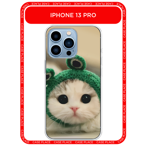 Чехол на Apple iPhone 13 Pro / Айфон 13 Про с принтом Котёнок в лягушачьей шапочке