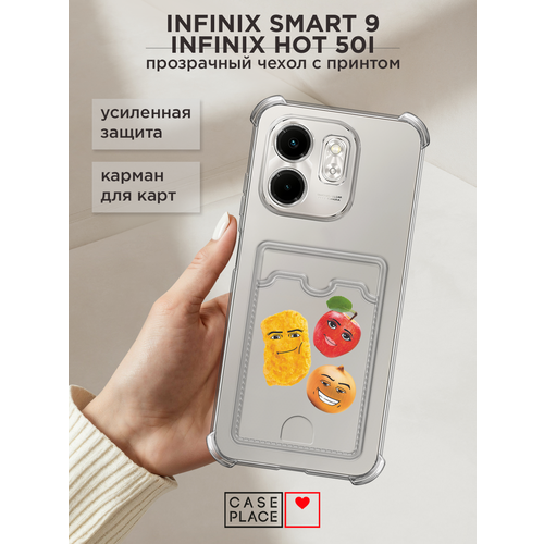 Чехол на Infinix Smart 9/Hot 50i (Инфиникс Смарт 9/Хот 50i) с картой и принтом Овощи с лицами из ТикТока