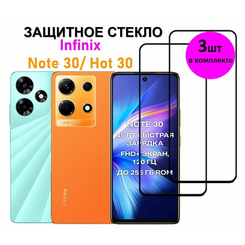 Комплект 3 в 1: Защитное стекло на Infinix Note 30 / Hot 30 ( 3 шт ) Инфиникс Нотэ 30 / Хот 30 Полноэкранное стекло с рамкой Full Glue
