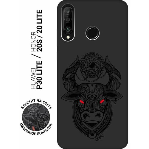 Матовый Soft Touch силиконовый чехол на Honor 20 Lite, 20s, Huawei P30 Lite, Хуавей П30 Лайт, Хонор 20 Лайт, 20s с 3D принтом "Grand Bull" черный