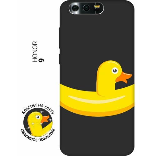 Матовый Soft Touch силиконовый чехол на Honor 9, Хонор 9 с 3D принтом "Duck Swim Ring" черный