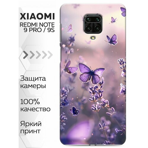 Чехол для xiaomi Redmi Note 9S, Redmi Note 9 Pro с принтом бабочки и лаванда (Сяоми Редми Нот 9С, Редми Нот 9 Про)
