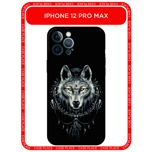 Черный матовый чехол на Apple iPhone 12 Pro Max / Айфон 12 Про Макс с принтом Волк оберег