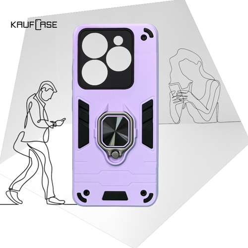 Противоударный чехол на Tecno Spark 20 /Spark 20C (BG7n) (6.6"), сиреневый. Кольцо-держатель и магнитное крепление, яркие пластиковые защитные вставки