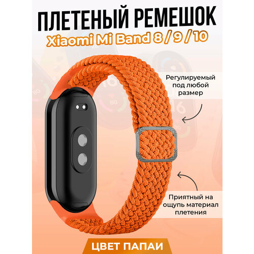 Плетеный ремешок для Xiaomi Mi Band 8/ 9, регулируемый под любой размер, цвет папаи