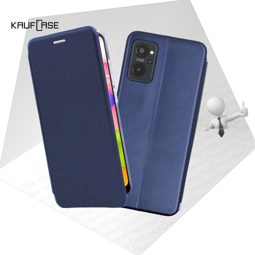 Чехол книжка для телефона Realme 9i 4G (RMX3491) (6.6"), темно-синий. Текстура под кожу