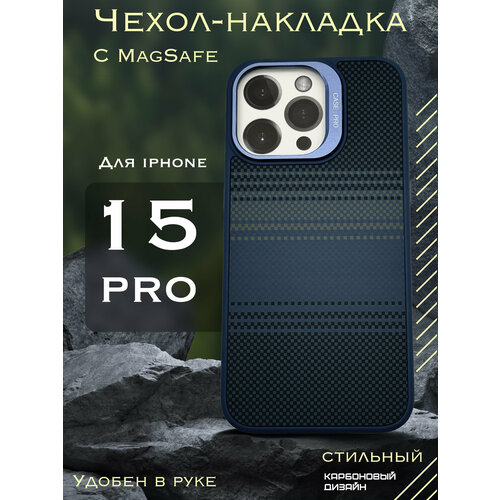 Чехол-накладка на Айфон 15 Pro c подставкой, ударопрочный, карбоновый, с поддержкой беспроводной зарядки MagSafe