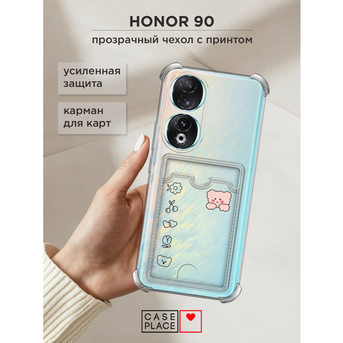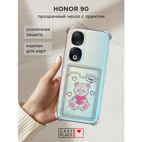 Чехол на Honor 90 (Хонор 90) с картой и принтом Милый мишка с сердечком