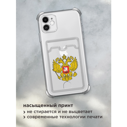 Чехол на Apple iPhone 11 (Айфон 11) с картой и принтом Герб Россиии