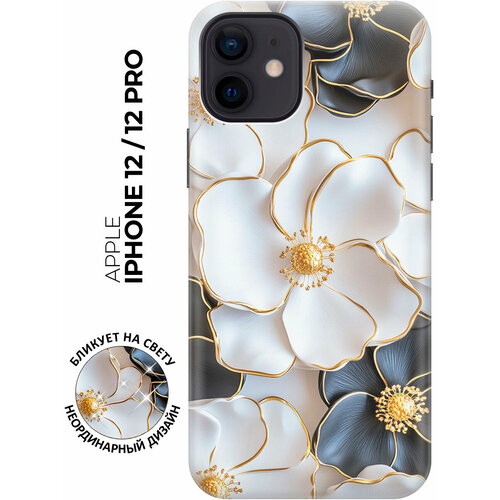 Силиконовый чехол на Apple iPhone 12 / 12 Pro с принтом "Белые и черные фиалки"