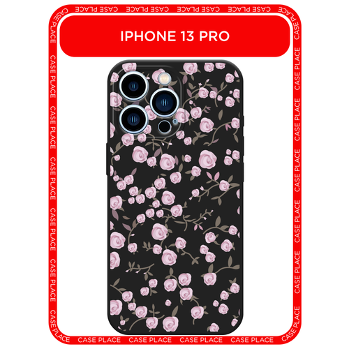 Черный матовый чехол на Apple iPhone 13 Pro / Айфон 13 Про с принтом Нежно-розовые розы 2