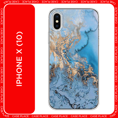Чехол на Apple iPhone X / Айфон X с принтом Холст сине-белый