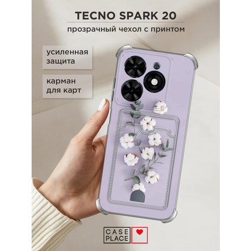 Чехол на Tecno Spark 20/Infinix HOT 40i (Текно Спарк 20/Инфиникс Хот 40i) с картой и принтом Веточка хлопка