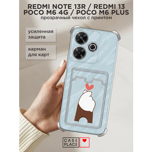 Чехол на Xiaomi Redmi Note 13R/Redmi 13/Poco M6 4G/M6 Plus (Сяоми Редми Ноут 13R/Редми 13/Поко М6 4G/M6 Плюс) с картой и принтом Кот делает жест сердечком