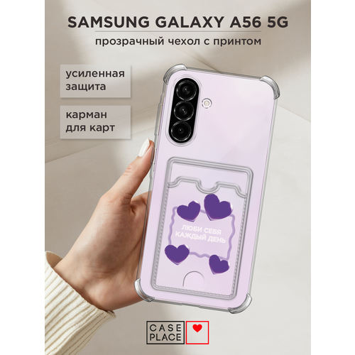 Чехол на Samsung Galaxy A56 5G (Самсунг Галакси А56 5G) с картой и принтом Сердечки и надпись Люби себя