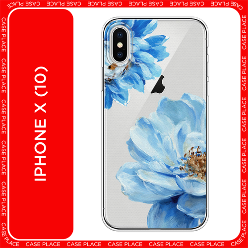 Чехол на Apple iPhone X / Айфон X с принтом Голубые клематисы, прозрачный