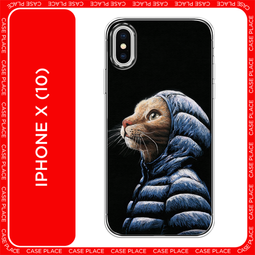Чехол на Apple iPhone X / Айфон X с принтом Кот в капюшоне