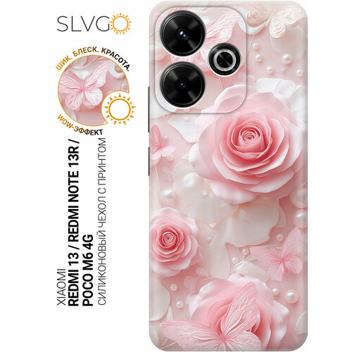 Силиконовый чехол на Xiaomi Redmi 13 / Redmi Note 13R / Poco M6 4g с принтом Бабочки в розовом саду, trn