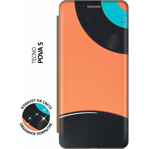 Чехол-книжка Пластинки на оранжевом на Tecno Pova 5 / Техно пова 5 с эффектом блика золотой