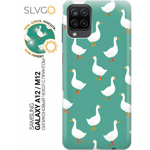 Силиконовый чехол на Samsung Galaxy A12 / M12 с принтом Гусиный паттерн, trn