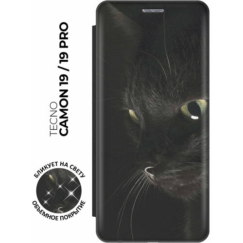 Чехол-книжка на Tecno Camon 19 / 19 Pro / Техно Камон 19 / 19 Про с рисунком "Черный кот" черный