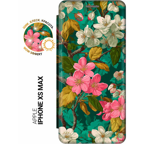 Чехол-книжка на Apple iPhone XS Max с принтом "Романтическое дерево" золотой