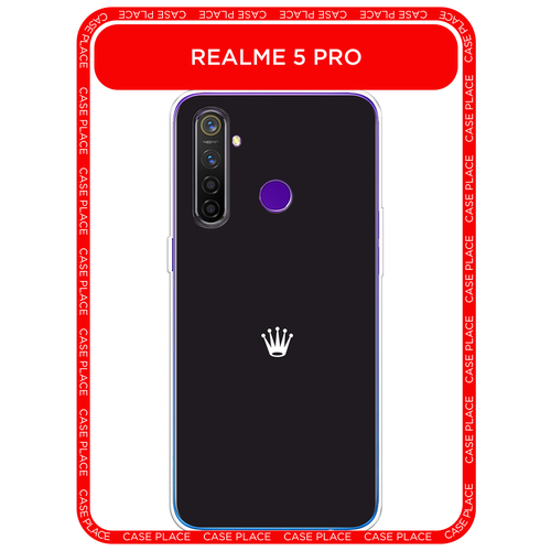 Чехол на Realme 5 Pro / Реалми 5 Про с принтом Белая корона на черном фоне