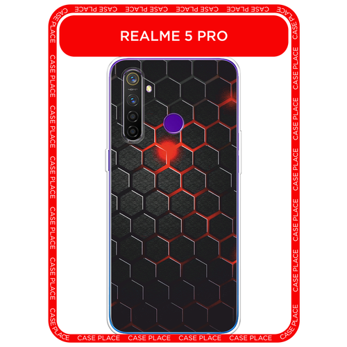 Чехол на Realme 5 Pro / Реалми 5 Про с принтом Фон соты красные