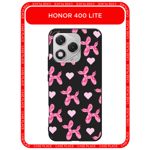 Черный матовый чехол на Honor 400 Lite / Хонор 400 Лайт с принтом balloon dogs pink