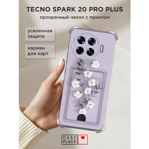 Чехол на Tecno Spark 20 Pro Plus (Текно Спарк 20 Про Плюс) с картой и принтом Веточка хлопка